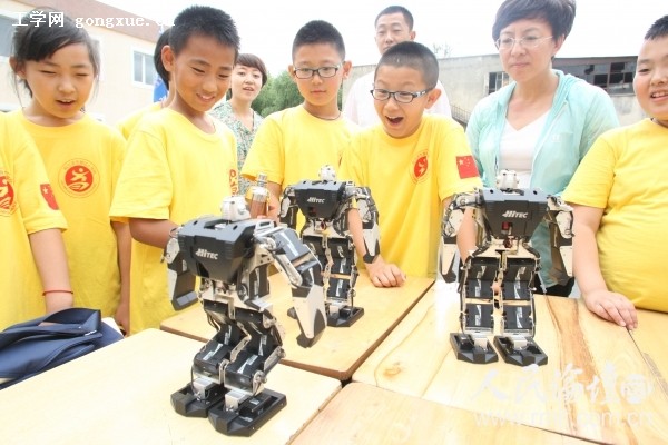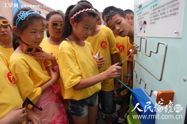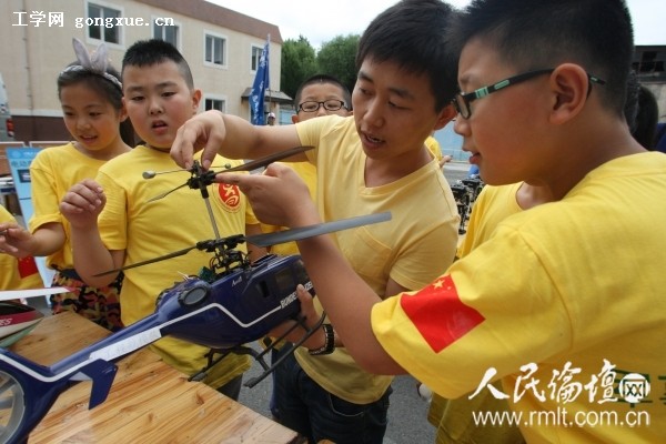 精美逼真的船模,一飞冲天的航模,灵活的舞蹈机器人、慧鱼机器人……7月14日,哈尔滨工程大学机电工程学院“蓝蝴蝶志愿队”将这些凝结着哈工程大学生创新思维的科技创新作品带进了哈尔滨育红小学,新奇的作品瞬间就吸引了一大群孩子们的眼球。