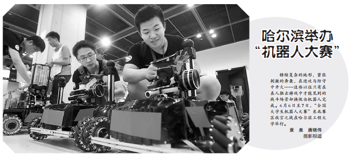 错综复杂的地形,紧张刺激的奔袭,在进攻与防守中开火……这些以往只有在真人狙击游戏中才能见到的战斗场景却换做由机器人完成。6月6日至7日,“全国大学生机器人大赛”东北赛区收官之战在哈尔滨工程大学举行。