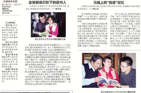 赵杨(杨玉洁的小儿子):阅读书目比较广泛,历史名著、人物传记、职场小说等都有涉猎。