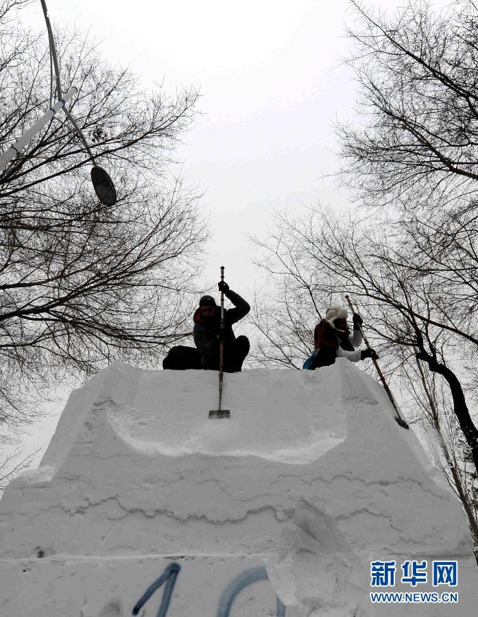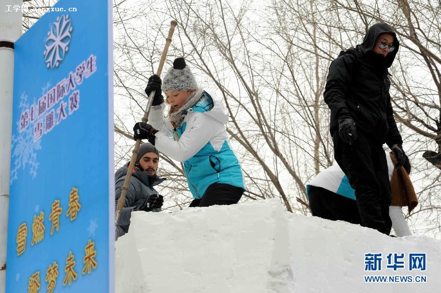4日,参赛大学生在进行雪雕创作。 当日,以“雪燃青春逐梦未来”为主题2015第七届国际大学生雪雕大赛在哈尔滨工程大学拉开帷幕。来自中国、美国、俄罗斯、泰国、乌克兰等11个国家和地区91所高校的144件作品报名参赛。据介绍,本届大赛总用雪量2326.5立方米,刷新了本项活动保持的世界上规模最大的大学生雪雕群雕世界纪录,本项赛事也是国际唯一的大学生雪雕比赛。新华社记者王松摄