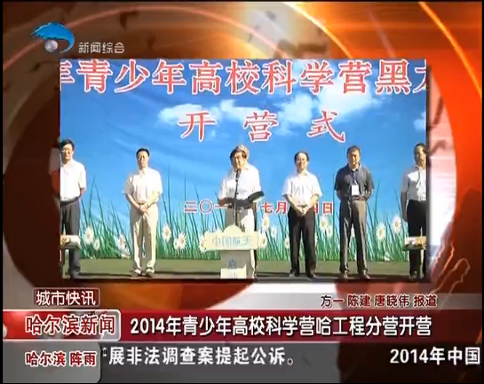 7月14日,哈尔滨电视台《哈尔滨新闻》报道2014年青少年高校科学营黑龙江分营昨天在哈尔滨工程大学开营。