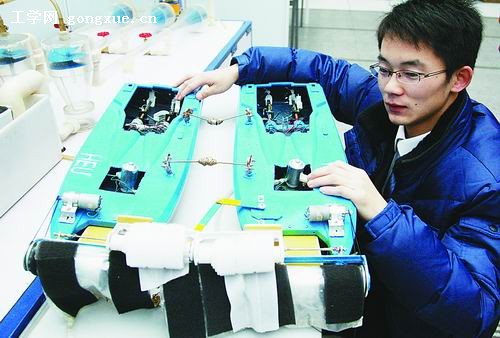 第六届全国大学生节能减排社会实践与科技竞赛日前在上海落幕。哈尔滨工程大学任凭等同学自主研发的应急水污染处理船获得一等奖。