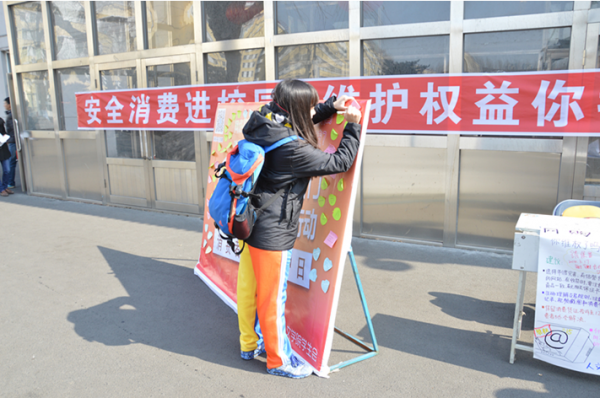“今年的‘3·15’消费者权益日恰逢新《消法》正式实施。所以不仅现场活动以宣传新《消法》为主,哈工程人文学院法学系还联合学生会权益部设置新消法宣传板块,设立咨询台,就新《消法》亮点、消费纠纷热点、网络交易安全、中介行业陷阱等问题进行解答。”人文学院辅导员董春辉说。