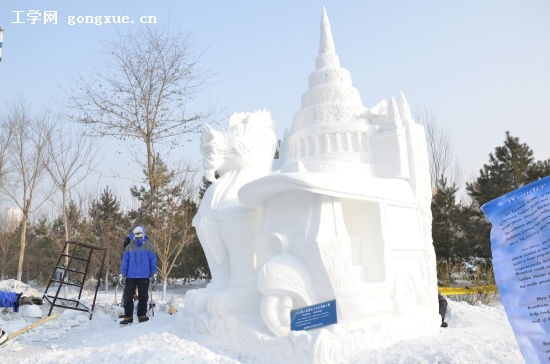 自第一届国际大学生雪雕大赛开始,泰国队一直是大赛的忠实朋友。那时,泰国的比赛队伍总共35人,直到今年,泰国国内四所高校联合组织了四支共120多人的代表团来到哈尔滨参赛。