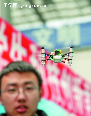 近日,在哈尔滨工程大学举行的大学生科技创新大赛上,一名大学生展示了自主研发的微型飞行器,吸引了许多人的目光。