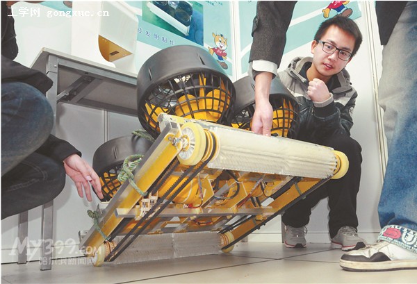昨天,哈尔滨工程大学第十九届“五四杯”大学生学术科技创新大赛决赛展开,赛事旨在培养大学生的创新意识与实践能力。图为参赛的复合吸附式船体清刷机器人。