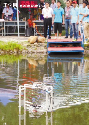 昨天,第二届全国海洋航行器设计与制作大赛在哈尔滨工程大学开赛。当天比赛最为精彩的是在哈工程大学济海湾进行的舰船模型智能航行比赛。比赛通过测试船模依次穿过航行路线上每一个光电门的次数和时间评定成绩。本报记者刘阳洋摄影报道