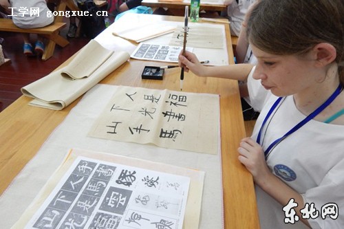 新西兰学子体验中国书法魅力。东北网记者 王蕊 摄