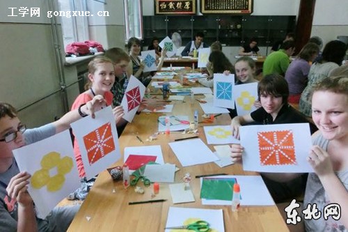 新西兰的学生体验剪纸,自制作品。东北网记者 王蕊 摄