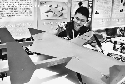日前,在哈尔滨工程大学举行的黑龙江大学生材料科学与工程创新设计大赛中,由哈尔滨工程大学的大学生制作的镁锂轻金属合金无人机吸引了许多人的目光。据了解,这种无人机重量轻,运输携带方便,具有耗能低,续航时间长,载荷能力大,适应性强等特点。本报记者苏强摄