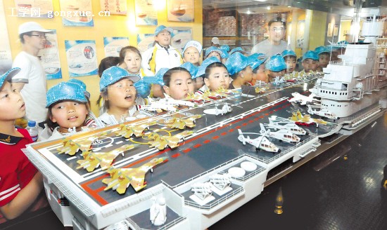 9日,南岗小学的一百多名小学生有幸参观哈工程大学,大学生志愿者们带领着小学生参观了图书馆、大学生活动中心、船舶博物馆、大学生科技作品展馆等场馆。 本报记者刘阳洋摄