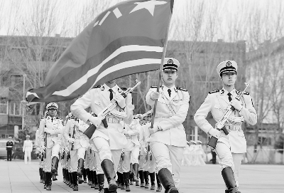 23日中午,全体海军国防生在学校奥利霍夫广场列队,300余名国防生组成的国旗护卫队、徒手、劈枪、持枪四个方队接受校领导的检阅。随后的分列式,四个方队伴随着雄壮的音乐依次走过阅兵台,国防生整齐的步伐、挺拔的身姿,充分展现了新一代海军后备军官的风采。