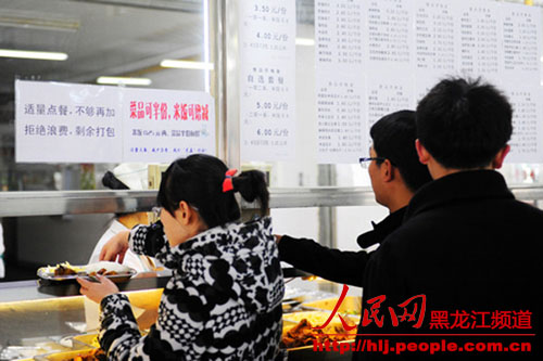 在哈尔滨工程大学美食广场二餐厅,学生梁兴敏选择了一份套餐。“这样的套餐比较适合我的饮食习惯,可以同时吃三份菜,米饭也可以根据自己的饭量调整,还可以搭配些面食,既丰富了午餐品种,又不会出现打多了吃不完的浪费。”吃完饭的小陈将餐具送到回收处,餐盘里干干净净。