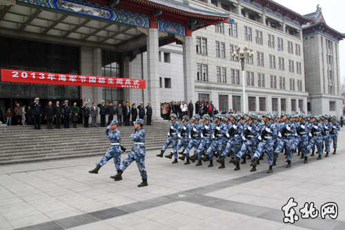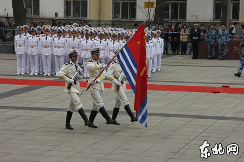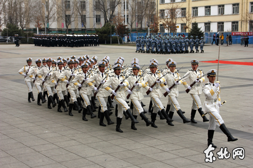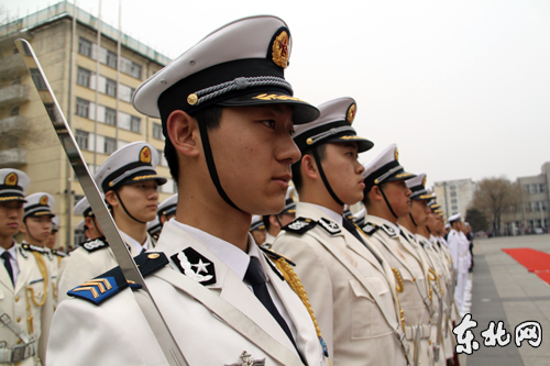 东北网4月23日讯(记者王蕊)23日,哈尔滨工程大学全体海军国防生举行阅兵仪式,三百余名国防生组成的国旗护卫队、徒手、劈枪、持枪四个方队接受检阅,展现了新一代海军后备军官的风采。