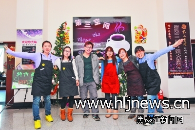 舒缓的音乐,静谧的空间。空闲时来到这里,或喝一杯咖啡,或温习功课。校园咖啡小屋,创建已五年。玻璃上的贴画、简易的照片墙、别致有序的酒柜,让学生咖啡厅显得格外素朴、幽静、雅致。
