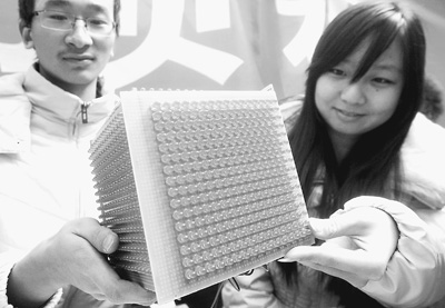 近日,哈尔滨工程大学的大学生发明了一种立方体结构的LED显示屏。该显示屏是基于LED点阵显示技术设计而成的,其6个面都可根据程序控制循环显示不同的图案或数字,可用于制作立体广告牌。