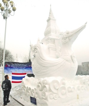 在休息室里,记者遇到了来自泰国的拉查蒙坤坦亚布里技术大学代表队,他们凭借《泰国传说中的天鹅》荣膺一等奖。带队教师贤淑文告诉记者,泰国是没有冰雪的国家,选手们在来哈之前都是用沙子做道具演练。到哈后,他们接受了哈尔滨工程大学雪雕工作室的老师指导,虽然“集训”只有1天,但都有“艺术底子”的青年们还是较好地掌握了雪雕技巧和工具使用方法,最终取得了佳绩。