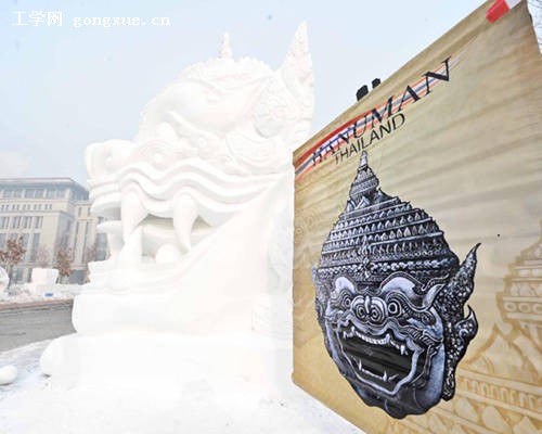 这是泰国萨拉巴瑞职业学院的雪雕作品《神猴》(1月7日摄)。新华社记者王松摄