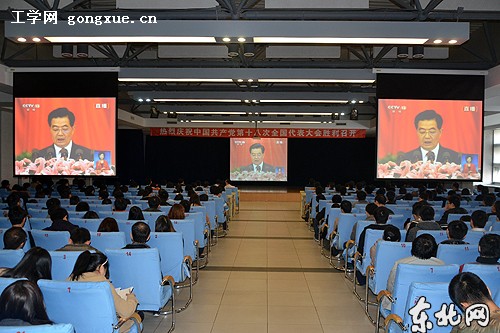 东北网11月8日讯(记者王蕊)金秋时节,丹桂飘香。11月8日,中国共产党第十八次全国代表大会在人民大会堂隆重召开。我省各高校纷纷组织学校的机关干部、党员代表、学生代表,在上午9时共同收看了这一盛况,并相继开展不同的形式,喜迎十八大的胜利召开。