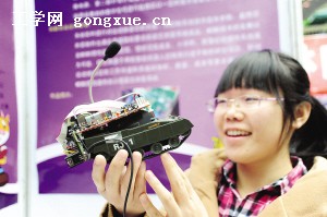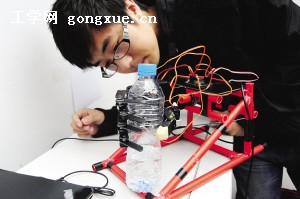 在开幕式上很多创意设计都十分吸引眼球,只见大学生将一个水瓶放在桌子一角,多自由度可控机械手像机器人的手一样可以轻松完成抓握的过程。而声控小车更是神奇,只要有人说“开车”、“停车”、“左转”、“右转”,小车就会乖乖完成指令。四轴飞行器可以原地起飞,由于飞行器上有四个螺旋桨,速度较普通飞行器更快,可以轻松搞定“航拍”等任务……