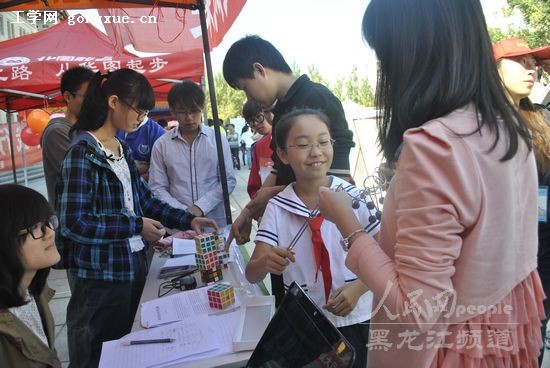 本次嘉年华活动还邀请了学校启航行动对接学校——哈尔滨市花园小学的50名师生前来参观,孩子们看着一件件科创作品如痴如醉,有的还萌生了将来制作科技小发明的想法。“启航行动”作为哈尔滨工程大学科技协会的品牌活动,三年来共开展40余次,成功将学校大学生科技创新成果辐射社会,先后与哈尔滨继红小学、伊春市嘉荫县第二小学、哈尔滨阿城第一中学、齐齐哈尔朝鲜中学等省内15所中小学对接。
