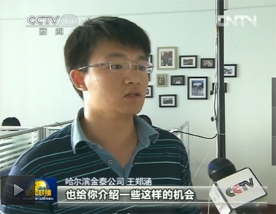 报道中,我校国家大学科技园孵化企业——金泰科技青年创业者王正涵及其团队展示了他们最新研发了互动广告平台:互动广告系统。王正涵在采访中说,他和团队创业的办公场地是免费的,同时还得到了一些创业机会和客户资源。