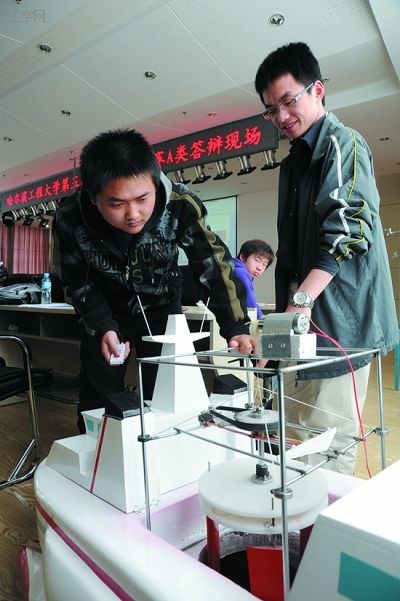 25日,哈尔滨工程大学的学生展示了自己的节能减排作品,其中,“海水淡化工程船”和“滑动式单叶片水流发电装置”吸引了大家的目光。据介绍,“海水淡化工程船”充分利用海洋中的水资源和潮流能资源,将其转化为电力和淡水。“滑动式单叶片水流发电装置”的主要原理是通过水的流动,带动发电机组的叶片,从而驱动拉杆带动发电机组发电。