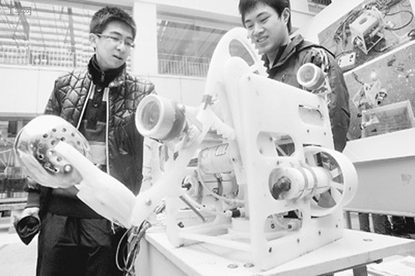 一种新型的水下机器人近日在哈尔滨工程大学研发成功。这个名为“探路者号”的水下机器人采用新的信息和通信技术,可无线遥控,适于在浅水区作业,可用于大坝、桥墩水下部分检查、近海救助打捞、维修海底管道、电缆等领域。