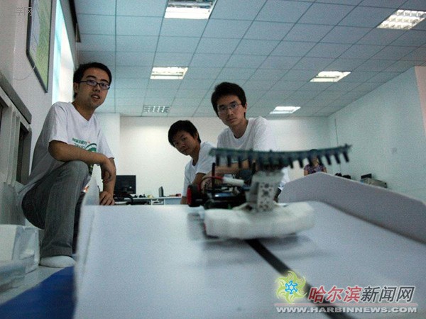 近日,在第四届全国大学生智能汽车竞赛中,哈尔滨工程大学学生自主研制的智能车“极品飞车2号”勇夺智能车光电组全国总决赛一等奖。本次大赛共有来自清华大学、浙江大学等100所高校的120余支队伍参赛。图为获奖大学生在实验赛场对智能车性能进行测验。