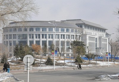 26日,哈尔滨工程大学新图书馆建设工作已接近尾声,工人正在进行内部设施的安装。据了解,该图书馆分为三部分,采用对称布局,东西两侧为半圆形辅楼,主楼和西辅楼为图书馆阅览区和藏书区,东辅楼为档案馆,其总建筑面积达5万平方米,是目前国内高校中最大的图书馆,内部共有5500个阅览座位,预计4月末可投入使用。