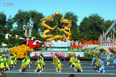 我省彩车“龙腾盛世”在游行中。刘庆义摄