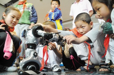 20日,哈尔滨工程大学科技展览室迎来了跃进小学的20多位农民工子女,孩子们在这里上了一堂生动的“机器人课”。据介绍,这是哈尔滨工程大学在暑假期间推出的“同在蓝天下”工艺活动。大学生们请来了农民工孩子参观校园,观看船舶模型和仿生机器人,让他们在感受科技的魅力同时,养成学科学哎科学的良好习惯。