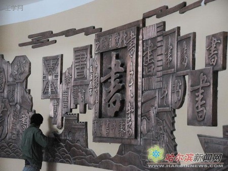 10日,哈尔滨工程大学新建图书馆内外装修工程基本完成,工人正在进行内部设施安装的收尾工程。