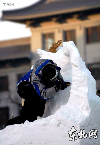 据介绍,工作人员将分别制作20块长3米、宽3米、高3.5米的雪块和10块长2米、宽1米、高2米的雪块分别用于2009首届国际大学生雪雕比赛第二届校园大学生雪雕比赛。目前10块校级比赛雪块已经完成,其他预计将于23日前全部完成。位于主赛场的大型主题雕塑《春天的号角》和哈尔滨工程大学1号楼后的背景墙浮雕现已由该校冰雪艺术工作室的师生动工开塑。