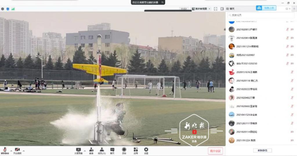 哈尔滨工程大学航建学院飞行器创新工作室及未来飞行器俱乐部联合开展航模飞行表演活动。表演分为三个小型飞行器表演、无人机飞行表演、水火箭一飞冲天,他们以航模飞行表演的方式寄托了探索浩瀚星空的向往之情。