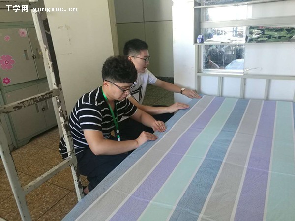 10:00,回到宿舍,一直等待的母亲感慨,“没想到这么快就完成了,把孩子交到学校我和元哲的爸爸真是放心了。”一旁的房国振边又动起了手:“横平竖直、有棱有角、平整无褶,这些是最基本的。我们寝室当年是军训优秀标兵寝室,希望你们也能赢得荣誉。”。张元哲不做声,却一板一眼地跟着学习,相信在不久的军训中,8423寝室一定会有不俗的表现。