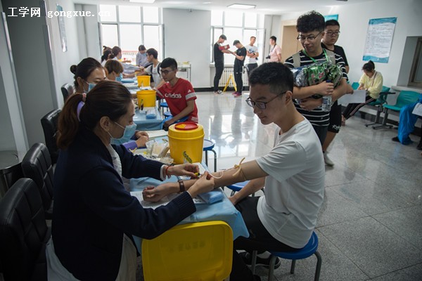 9:40,体检时,房国振主动接过两位新生手中的衣物,从校医院的六楼开始,一直到一楼最后一个项目结束,整个流程井然有序,不到半个小时。