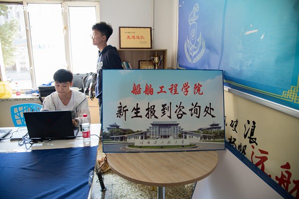 房国振,船舶学院2017级本科生,负责8公寓432寝室6名同学的报到,虽然距离正式开学还有半个月,学院已经给他分配了接待寝室,负责与新生建立联系,通过微信群向新生介绍学校情况、报到要求、“三海一核”办学特色和船舶学院人对海的那份特别情怀。