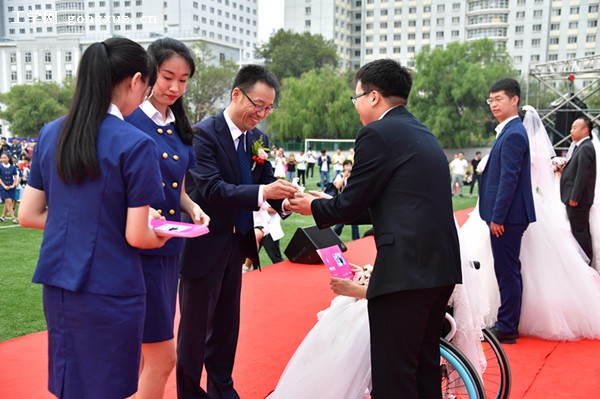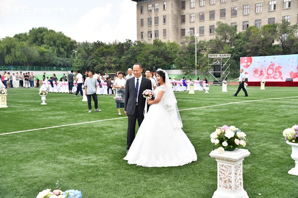 9月1日,秋高气爽、晴空万里,南体育场绿草茵茵、花团锦簇,来自哈尔滨、北京、天津、青岛、沈阳、大庆等地的32对校友重返母校,以集体婚礼的方式,共庆母校65岁生日,成为广大师生、校友精心打造的校庆日系列文化盛宴中的精彩一笔。
