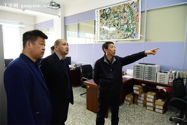 在马克思主义学院,谷焕民与学院领导进行了座谈,并听取学院负责人关于学院建设方案的实施情况以及2019年主要工作重点的汇报。他指出,党中央和工信部党组都高度重视党的建设和思想政治工作,开展党的政治建设相关研究意义重大,是学习贯彻习近平新时代中国特色社会主义思想和党的十九大精神,进一步加强党的建设的重要举措。他表示,学校党委高度重视马克思主义学院建设,给予了特殊政策支持。学院领导班子要更加团结、有战斗力,推动学院发展迈上新台阶。为此,他提出三点要求:一是以获批马克思主义理论一级学科博士点为牵引,加强马克思主义理论学科建设;二是打造“两分两专”思政课品牌,提升思政课教育教学水平,努力提高课堂的抬头率;三是积极响应黑龙江省头雁行动,通过“固巢留凤”和“筑巢引凤”,以更加积极、开放、有力的政策措施留住、用好各方面高端人才。
