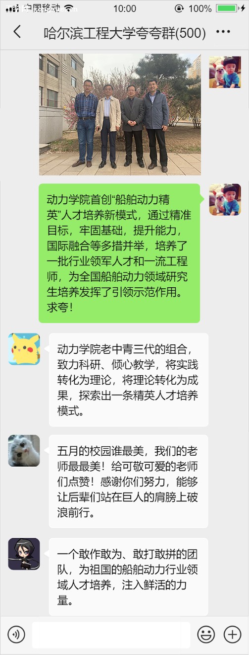 以郑群、路勇、李淑英、高杰、刘志刚为核心的“‘船舶动力精英’人才培养模式助推中国船舶工业发展的创新与实践”项目团队,以为祖国培养行业领军人才和一流工程师为己任,探索出“船舶动力精英”人才培养新模式,荣获第三届中国学位与研究生教育学会研究生教育成果奖二等奖(第一完成单位)。