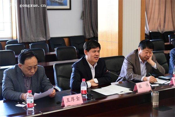韩端锋代表学校对张伟一行表示欢迎,对威海市人民政府长期以来对学校的支持表示感谢。并简要介绍了学校的历史沿革、发展现状、学科建设及科技成果转化工作等方面的情况。他表示学校愿意积极参与威海市科技创新建设工作,开展多角度、多层次的科研交流与合作。