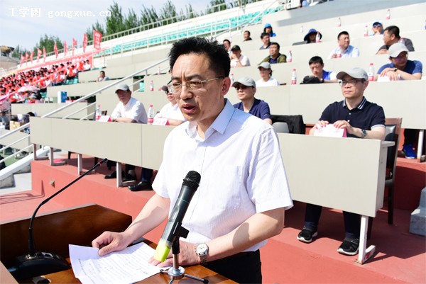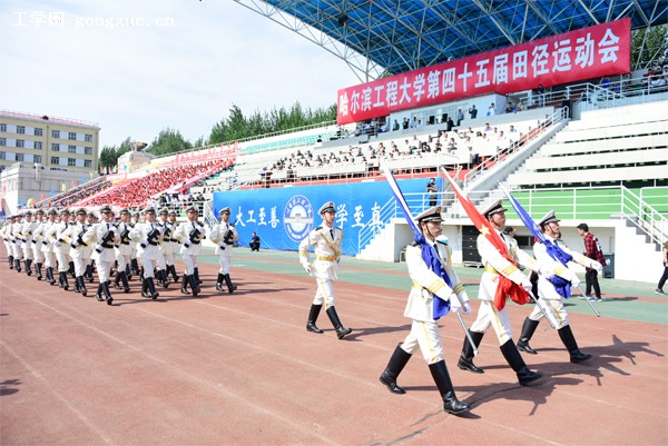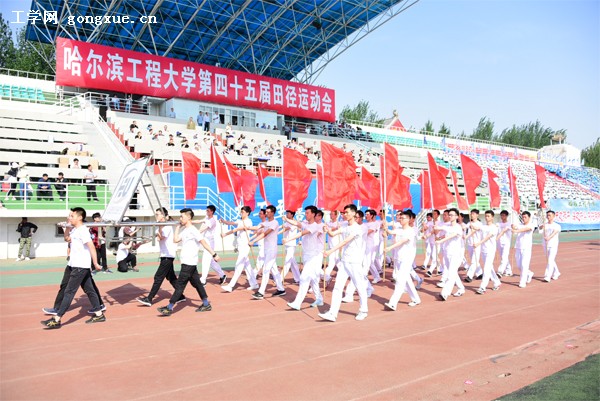 高岩致开幕词。他说,一年一度的田径运动会是全校师生的体育盛会,既展示了广大师生的精神风貌,同时也是对学校体育工作的集中检阅。过去的一年里,学校继续推进实施《学生体质健康促进工作方案》,2018年度学生体质健康总及格率达到94.6%,实现了三年持续提升,位于工信部所属高校前列。过去的一年里,学校高水平运动队奋勇拼搏,学校橄榄球队、沙滩排球队获全国冠军,校女子排球队连续15年、校女子篮球队连续9年获全省大学生联赛冠军。这些成绩的取得,充分彰显了“哈工程”学生优良的体育素质和良好的精神风貌。