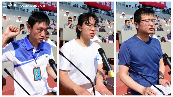 房巍代表裁判员宣誓,动力与能源工程学院石云姣同学代表运动员宣誓,体育道德风尚奖评比组组长史波宣读体育道德风尚奖评比条件。