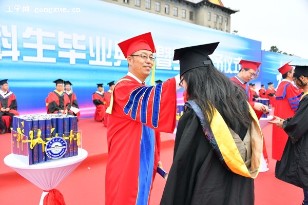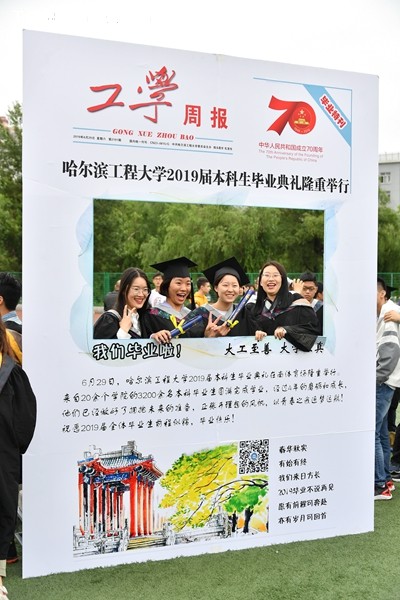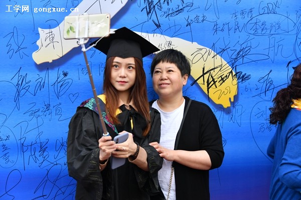 学校为本次毕业典礼搭建了长达85米的典礼台,并制作了 “我们毕业啦”“学士学位凭证”“终身学生证”“《工学周报》毕业专版”等摄影展板,深受学生欢迎。