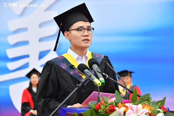 动力学院高文代表毕业生发言。他说:“我们即将告别美丽的母校,告别谆谆教导的老师,告别朝夕相处的同学,开启一段全新的人生旅程,我们将牢记母校的教诲,脚踏实地、不懈奋斗,让青春年华在为国家、为人民的奉献中焕发出绚丽光彩,让中华民族伟大复兴在我们的奋斗中梦想成真。”
