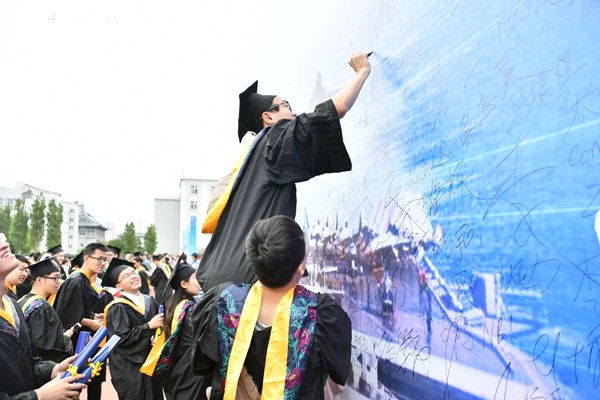 同学们,大学毕业是人生中最值得纪念的时刻。对我而言,与你们相伴的日子,也特别值得珍视。四年前,你们带着对未来的憧憬走进了校门,回想2015年的夏天,在你们入学的“第一课”上,我曾嘱咐大家:在大学的生活中,要学会独立,承担起家庭的责任;要磨练心智,承担起社会的责任;要积淀实力,承担起时代赋予的责任。四年时光,稍纵即逝,即将毕业的你们,学会了独立自主、经受了生活磨砺、练就了一身本领、成长为优秀青年。作为相伴与共的同路人,我感到由衷的欣喜,为你们的成长感到无比骄傲和自豪!