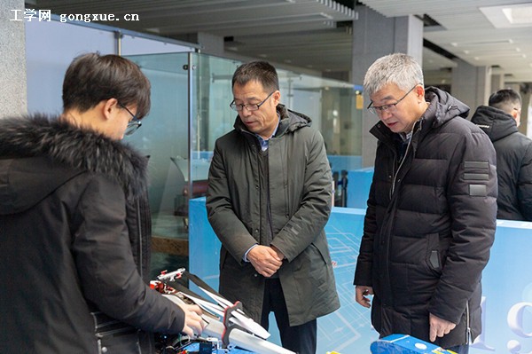 大赛期间,校党委副书记、校长姚郁,党委副书记夏桂华来到大赛现场,在展示区内听取了部分优秀项目负责人介绍项目设计理念、工作原理及创新点,并就各项目应用前景与大家互动交流,给予参赛学生鼓励,并慰问了大赛组织人员和评委教师。