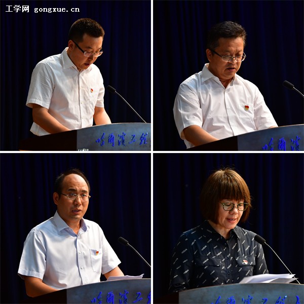 “先进基层党组织”获奖单位代表、水声工程学院教工第三党支部书记张光普,“优秀共产党员”获奖代表、材料科学与化学工程学院教授王贵领,“优秀党务工作者”获奖代表、外语系大学英语教研部第一教学团队党支部书记杨剑,“最佳组织生活”获奖单位代表、机关党委党政办公室党支部胡今鸿等4位同志作了交流发言。