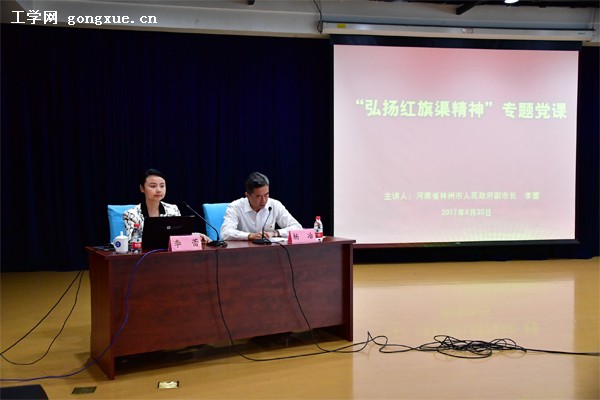杨冶主持专题党课学习。他说,红旗渠精神作为中国共产党革命精神的重要组成部分,是一面永不褪色的伟大旗帜。在中国共产党96岁生日这个特殊的日子里,校、院两级理论学习中心组(扩大)集中学习报告会,以专题党课的形式学习弘扬红旗渠精神,就是要把心中那须臾不曾忘记的初心、崇高的革命理想和实现海洋强国梦的崇高使命,汇聚成兴校强校的强大力量。